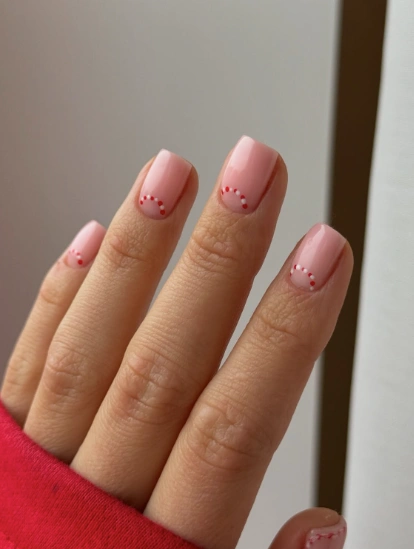 Less is sometimes the whole point. Paint all your nails baby pink, and draw one candy cane on your ring finger. Simple, modern, and quietly beautiful. The design feels fresh — no overdoing it, just one small sign of the season. These Christmas Nails match every outfit and never feel like too much.