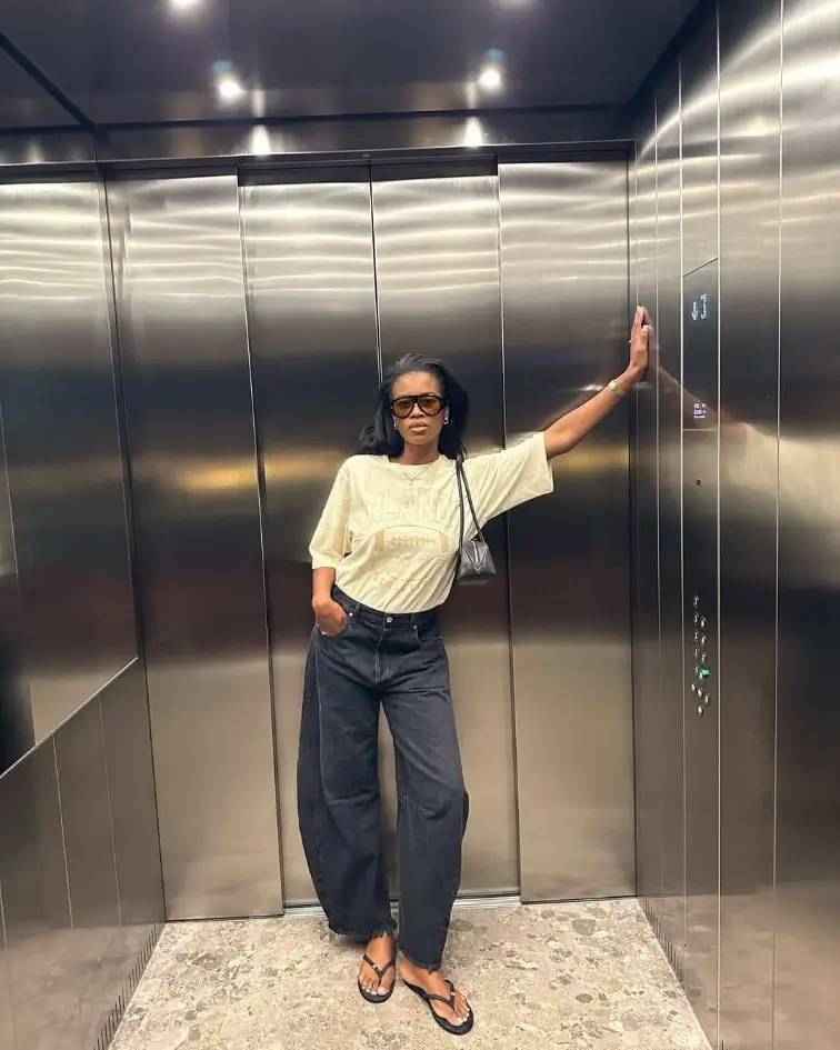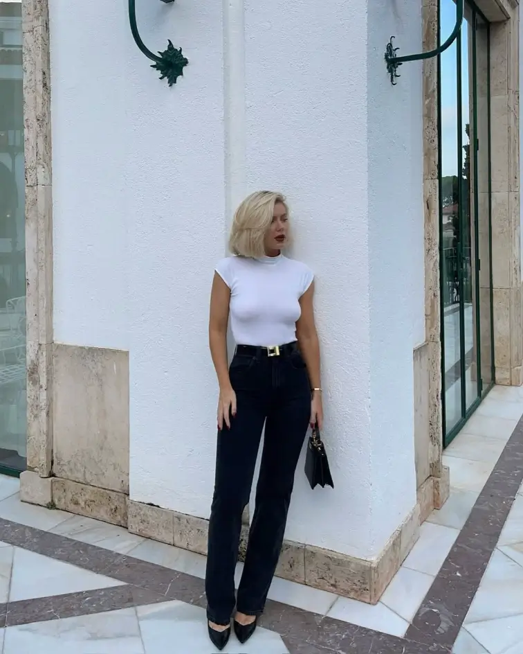 You don’t always need to go over the top to look good. A plain t-shirt or a fitted vest with black jeans and sandals is a classic, easy outfit. It’s perfect for warm days when you want to look good without trying too hard. This black jeans outfit is simple but stylish.