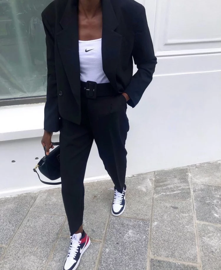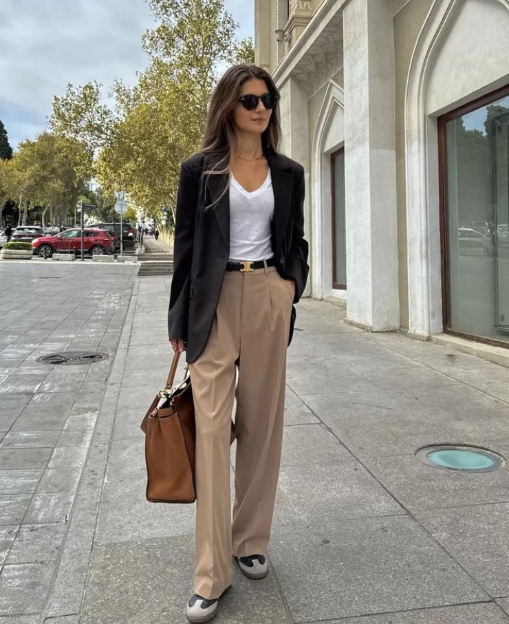 The best kind of style is the one that lets you move. Slip on a fitted tank beneath a structured blazer and finish with clean sneakers. The mix of sporty ease and tailored lines feels modern and free. It’s one of those Blazer Outfits that works when you want comfort without losing your edge.