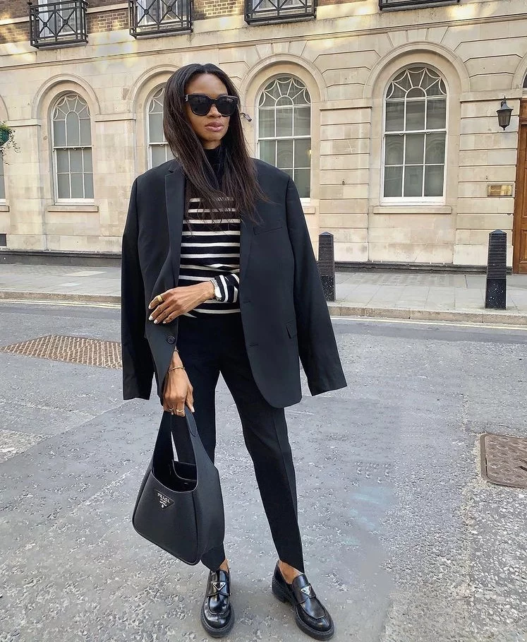 A striped sweater peeking from under a blazer creates depth and personality. It feels warm, a little playful, and still refined. Pair it with tailored trousers and loafers for a smart yet approachable finish. These Blazer Outfits bring an easy charm perfect for early mornings, cool evenings, or cozy café meetups.