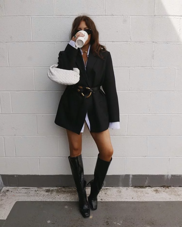 Wearing your blazer as a dress takes confidence, and it shows. Add a slim belt to define your shape and bold boots to ground the outfit. This look radiates strength without shouting. These Blazer Outfits remind everyone that elegance doesn’t have to mean quiet—it can carry power too.