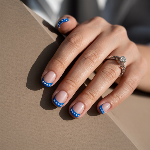 Blue French Nail Ideas can be fun and playful, especially when you incorporate dots into your design. You can line the tips with tiny blue dots or add them randomly on the nails for an abstract look. This playful pattern adds a modern twist to the classic French style and can be customized to suit your personality.