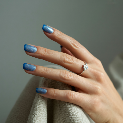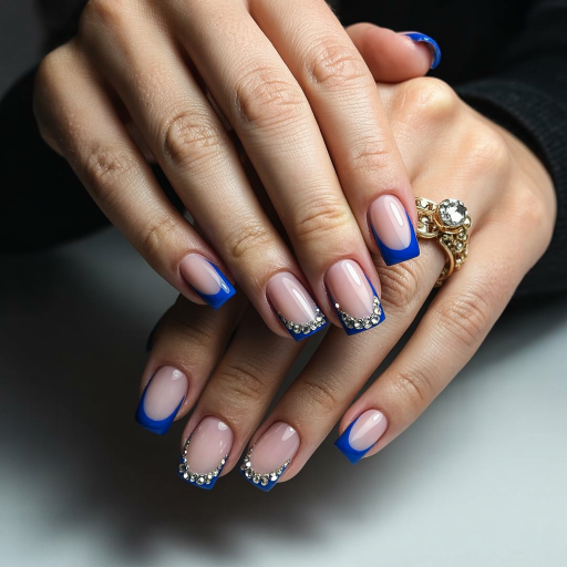 If you’re looking for something with a bit more sparkle, consider adding glitter to your Blue French Nail Ideas. Incorporating fine glitter into the tips or across the entire nail can bring a fun, festive feel to your manicure. You can either go all out with bold glitter or keep it light with a fine dusting for an elegant shimmer. This style is perfect for special occasions or whenever you want your nails to shine.