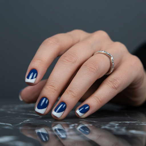For a more dramatic look, try pairing dark blue French tips with white accents. The contrast between the deep blue and crisp white creates a striking design that catches the eye. This combination is bold yet classic, making it perfect for anyone who wants to make a statement while maintaining a polished appearance.