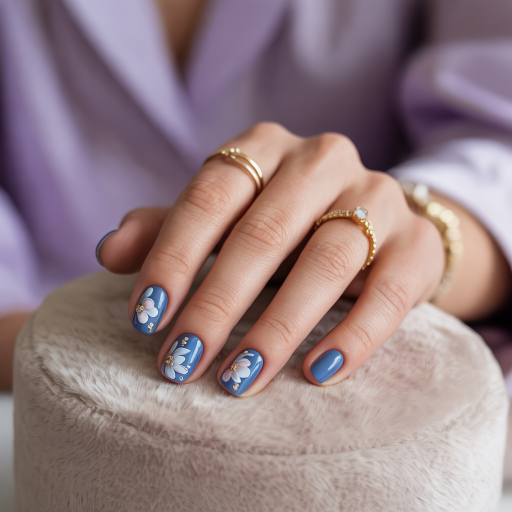 Floral details are a great way to elevate Blue French Nail Ideas. Small, hand-painted flowers or delicate floral decals can add a soft and feminine touch to your nails. The contrast of the blue tips with floral art creates a unique and eye-catching look. This style works wonderfully for spring or summer, bringing a fresh, light feeling to your manicure.