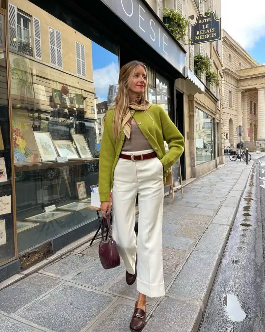 A scarf tied in a Parisian knot is the epitome of simple, understated elegance. To achieve this effortlessly chic look, fold your scarf into a triangle, drape it around your neck, and tie the ends loosely in front. Let it fall naturally, creating a relaxed yet polished vibe. This style adds a refined, timeless touch to any outfit, making it perfect for both casual and dressy occasions. It’s the type of accessory that speaks volumes without saying a word.