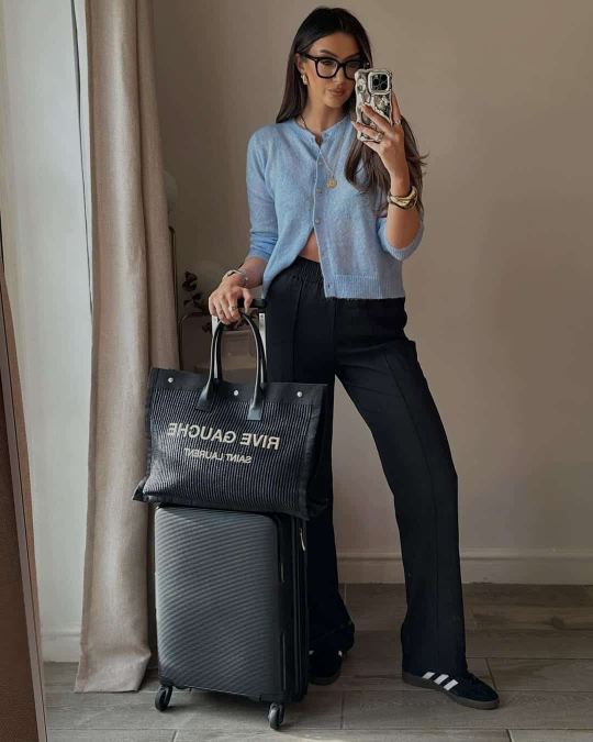 Some days you just want something quick and stress free. A maxi dress with sneakers, leggings with an oversized sweater, or wide leg trousers with a fitted top are easy combinations that always work. They are comfortable, stylish, and perfect for a long travel day.