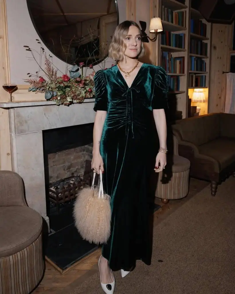 Let accessories do the quick lifting. Statement earrings, a jeweled brooch, a slim belt, or a structured mini bag can change a basic look in seconds. Pick one standout piece and keep the rest simple. It is the easiest way to turn a normal outfit into a Christmas Work Outfit.