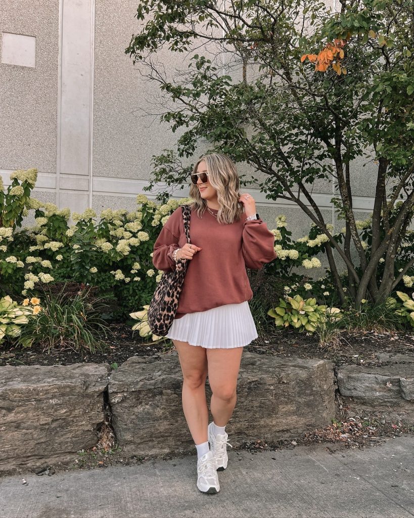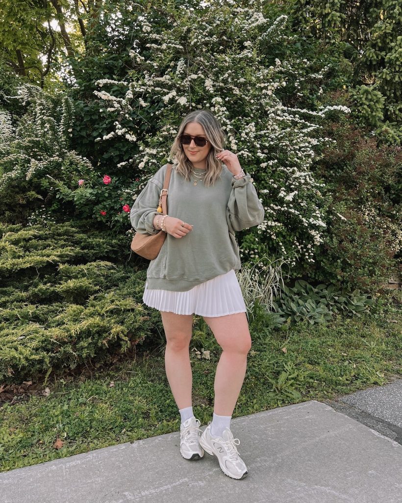 Sweatshirt + Pleated Skirt (Sporty Meets Girly)
