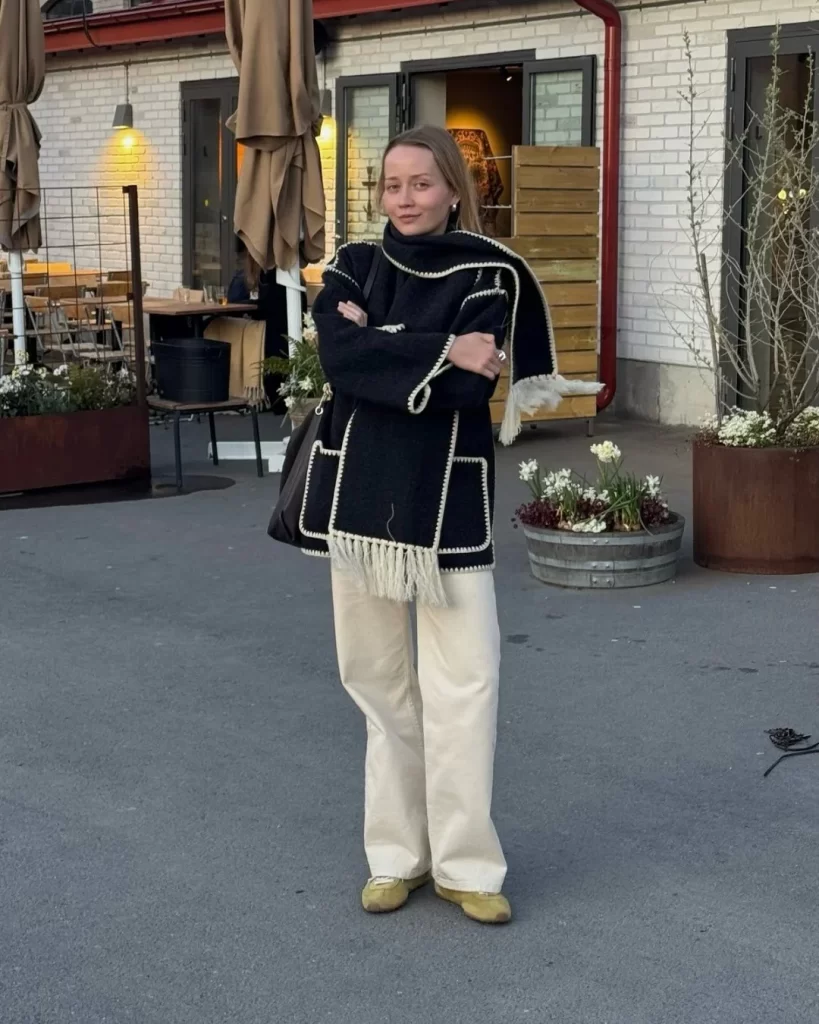 If you want comfy outfits that look grown-up, pair a structured knit with cream trousers. It’s giving “brunch in a quiet café” energy.
