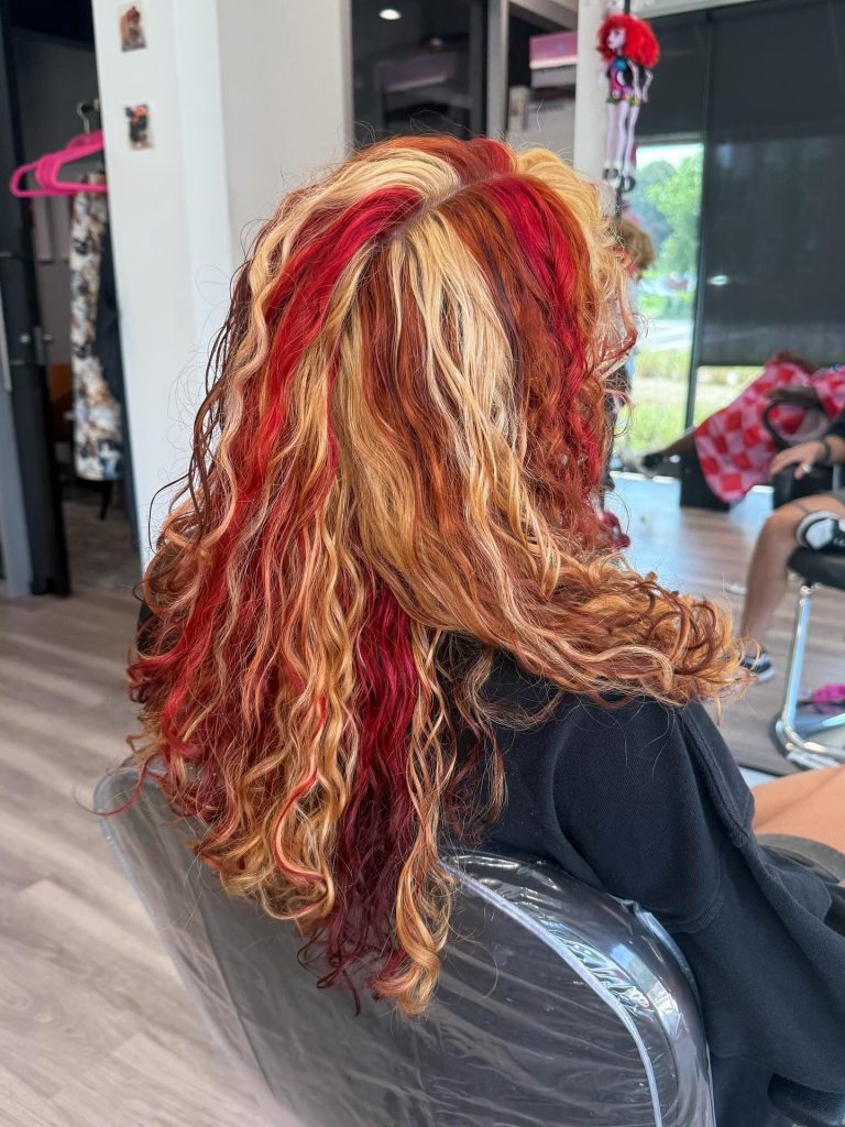 Fiery Multi-Tone Curls With Red and Blonde Sparkles