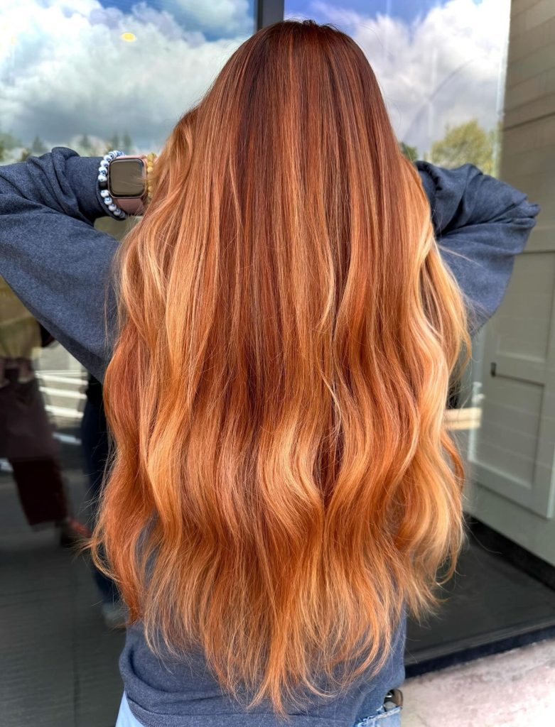 The copper melts into blonde in a way that makes your hair look like it’s being hit by golden-hour lighting 24/7.