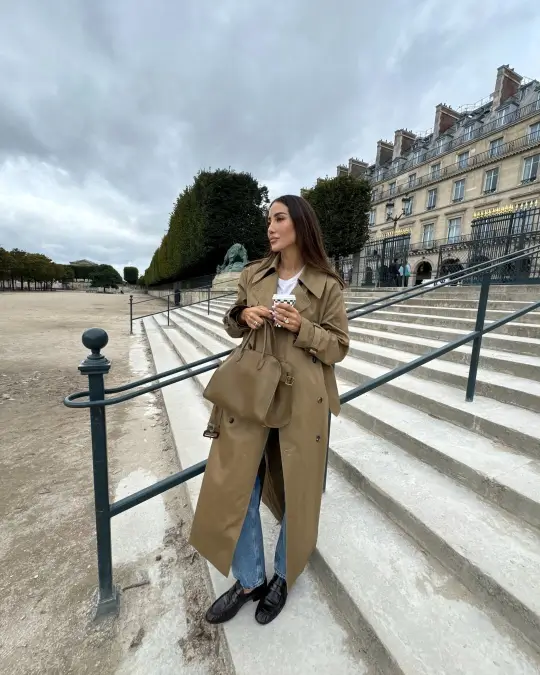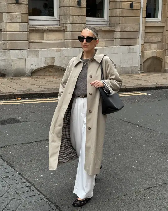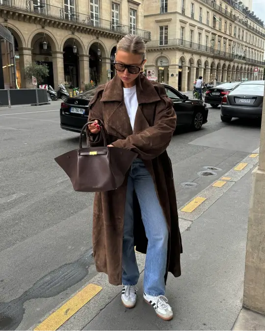 Chocolate brown is a color that belongs to fall—it’s deep, rich, and flattering on everyone. In trench coat form, it’s pure elegance. But when you pair it with sneakers? That’s when it gets fun. Throw it on over jeans and a sweater, and you’ll have a look that’s laid-back but still very “fashion editor off-duty.” A true example of cute fall outfits that blend comfort and style.