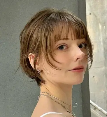 An angelic shag with miniature bangs is a light and dreamy haircut that looks soft and pretty. The shaggy layers in this style give your hair a lot of volume, while the small bangs add a cute touch. If you want a simple, soft hairstyle that still has a bit of edge, this is a perfect choice. It’s easy to take care of and will make you feel fresh and beautiful every day.