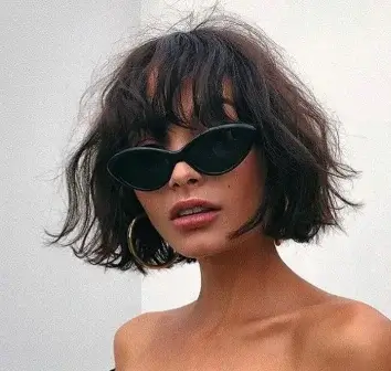 A wavy bob with full fringes (bangs) is another fun and cute short hair option. The wavy texture adds softness to your hair, making it look natural and relaxed. The full bangs are bold and cover your forehead, which helps to frame your face. This look is great if you want to add some volume and movement to your hair while still looking neat and polished.