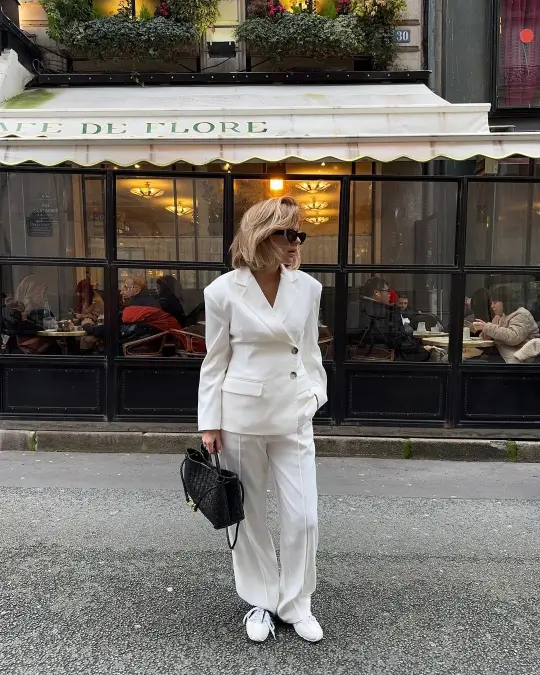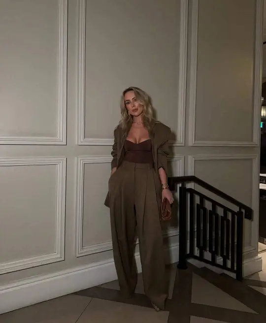 Evening suiting feels strong and playful when you add personality. Try a satin lapel, a cropped jacket, or wide leg trousers with a lace camisole, then trade sneakers for heels and carry a sparkly bag for contrast. Keep makeup soft with a defined eye and enjoy a confident, modern Dinner Outfits idea that works in any city.