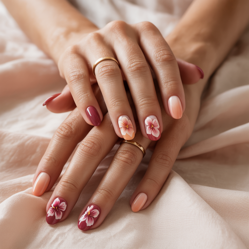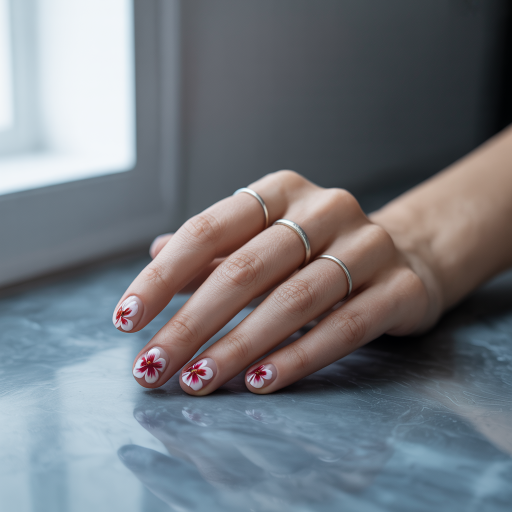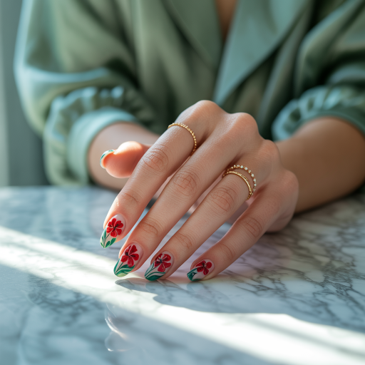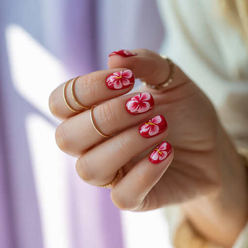Hibiscus Flower Nails can instantly become the focal point of your manicure with bold petal accents. These bright, vibrant petals in hues like red and pink pop against a neutral or pastel background. Whether you add a single hibiscus accent nail or create a full set of floral designs, this bold approach is perfect for those who want their nails to stand out. The contrast of the delicate petals and solid base gives this design a striking and elegant feel, making it a great choice for any occasion.