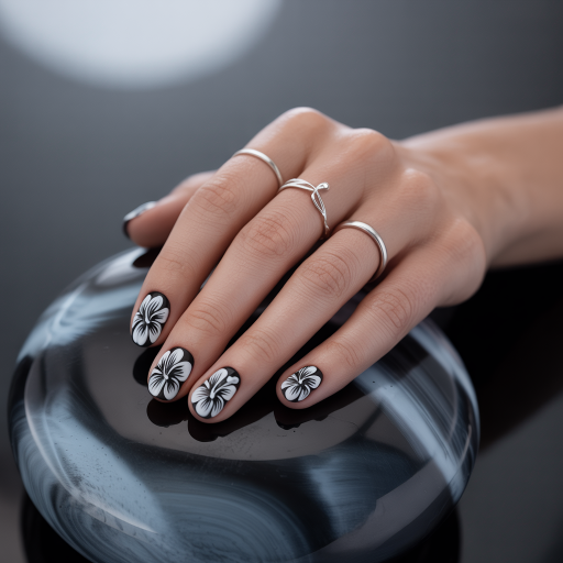 If you’re looking for a more sophisticated approach, black and white Hibiscus Flower Nails are a timeless choice. The contrast between bold black hibiscus flowers and a crisp white base brings out the elegance of the design. This minimalistic approach focuses on the intricate details of the hibiscus flower, making it perfect for both casual and formal events. The lack of vibrant colors highlights the natural beauty of the flower in a stylish and refined way.