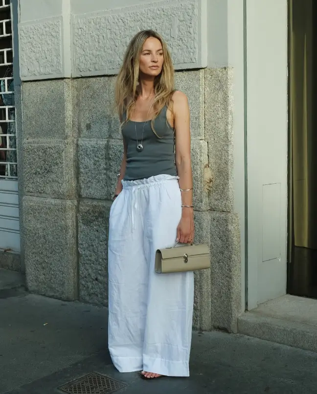 Let’s be honest — linen pants are the MVP of summer fashion. Lightweight, breathable, and effortlessly stylish, they keep you cool without compromising on looks. For an authentic Italian summer outfit, pair wide-leg linen trousers with a tucked-in tank or button-down shirt. Add a straw hat and oversized sunglasses, and you’ve mastered coastal chic.