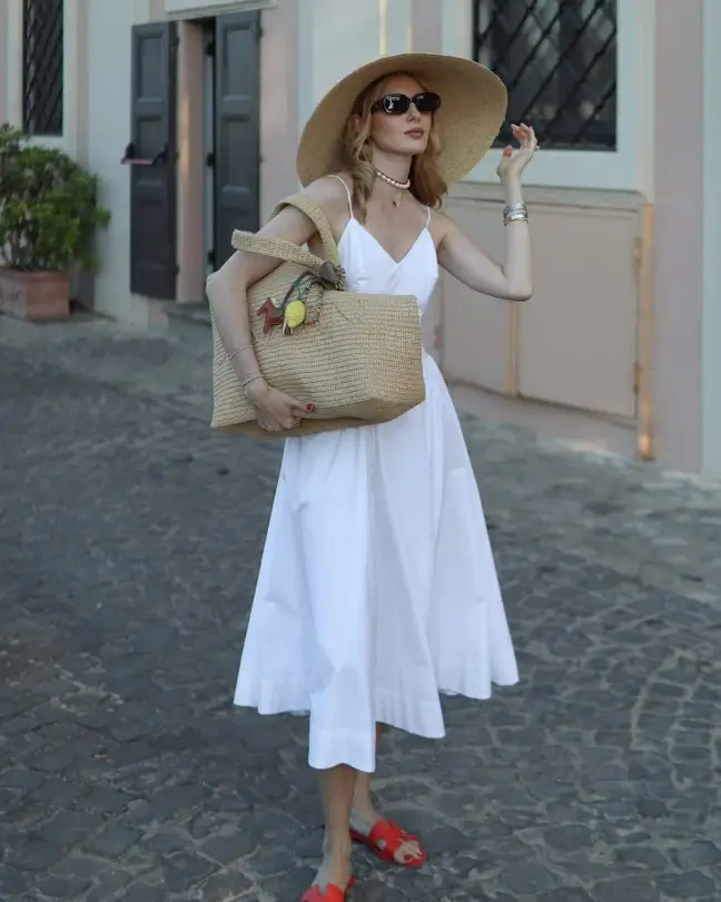 Sometimes the most powerful outfit is the one that speaks softly. A black or white sundress is the definition of easy elegance. Whether you’re headed to a vineyard, a beach, or a rooftop dinner in Rome, this Italian summer outfit works for it all. Accessorize with a statement necklace, slingback flats, or a bold red lip — and you’re ready for whatever the day (or night) brings.