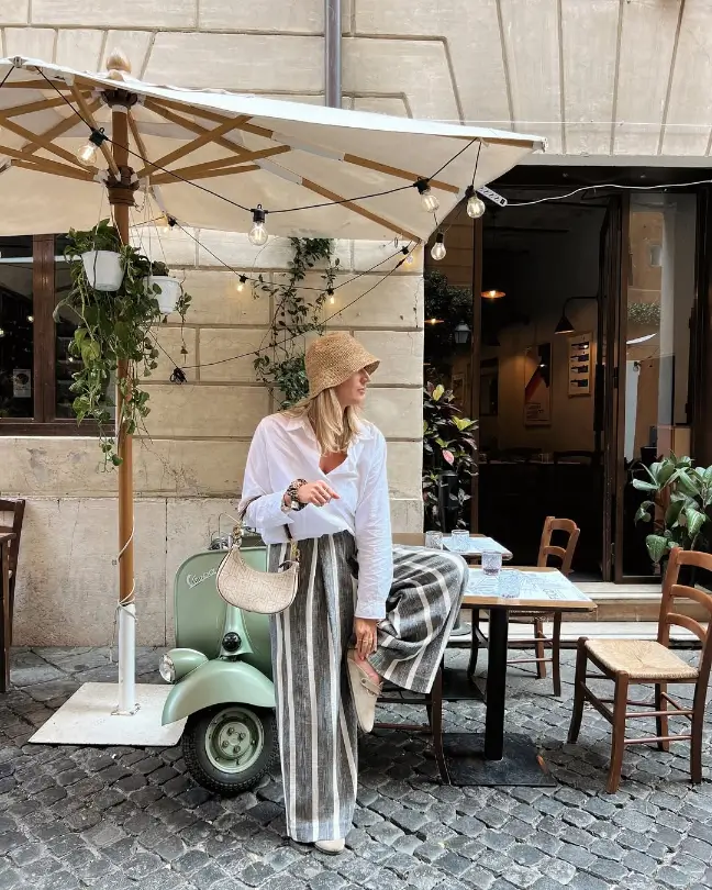 If you’re heading to the Amalfi Coast or planning a day trip to the Tuscan hills, wide-leg pants are your fashion friend. They flow, they flatter, and they photograph like a dream. For the ultimate Italian summer outfit, opt for lightweight fabrics in neutral or earthy tones. Finish the look with a belt, a tucked-in blouse, and a confident walk through the piazza.