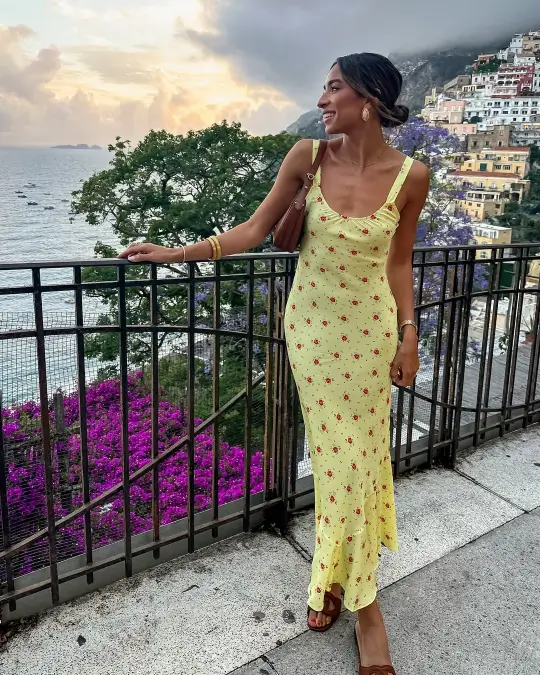 A corset midi dress has a way of making you feel like the main character in your own love story. The fitted bodice flatters your shape while the flowing skirt moves gracefully with every step. This is the kind of piece you wear for an evening in a candlelit piazza or a slow walk through a Tuscan vineyard. It is feminine, classic, and unforgettable, making it a must in your Italian Summer Outfits collection.