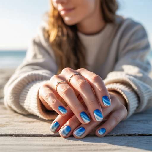 Let the details do the dazzling. Pair cool blues with a pearly top coat for a water sheen, tap in micro glitter only at the tips for sunlit sparkle, or add a single lily accent on a sheer base. Almond or oval shapes enhance wave gradients, while short squovals keep marbles crisp. Seal with a glossy, long-wear top coat, reapply midweek, and nourish with cuticle oil and hand SPF. Your manicure will look like a serene shoreline from first splash to last shimmer.