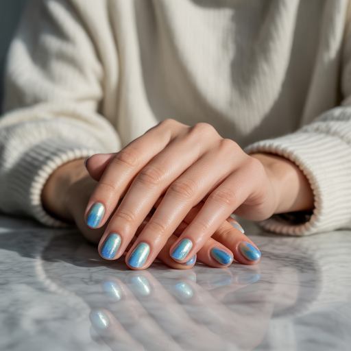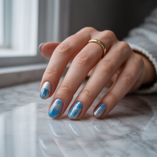A design that mimics the sparkling clear water of a lake, with soft blue shades paired with tiny silver glitter accents. The sparkling effect is reminiscent of sunlight glistening off the surface of the water. It’s a sophisticated design with just the right amount of sparkle for those who love understated glamour.