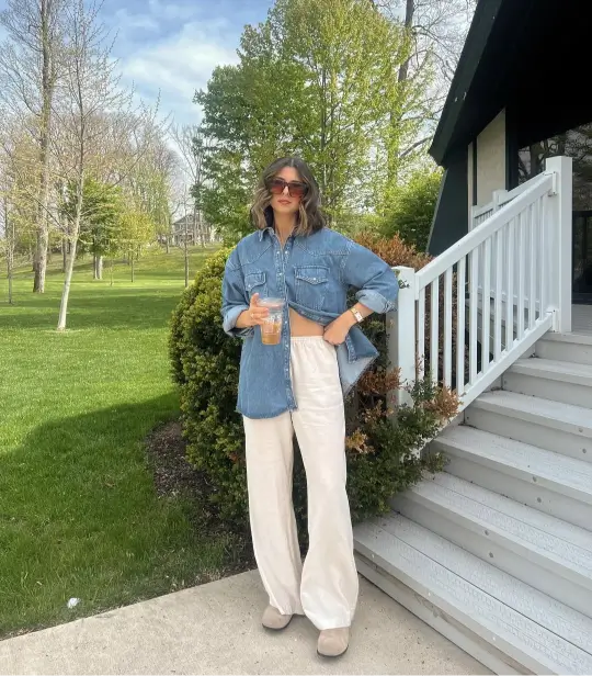 If you love a laid-back, cool vibe, a denim shirt paired with linen pants is your ticket. Denim’s timeless, and when you pair it with the softness of linen, you get the best of both worlds. It’s easy, stylish, and perfect for those days when you want to look effortlessly chic without even trying. Add some simple sneakers or flats, and you’re good to go.