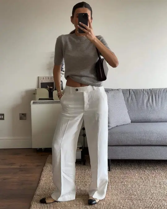 When the weather’s a bit cooler, layering a light knit top with your linen pants keeps you cozy without making you overheat. It’s a chic, comfy combo that’s perfect for those transitional days when you want something stylish yet relaxed. A soft knit adds a touch of warmth, making it a great choice for evenings out or a cozy afternoon gathering.