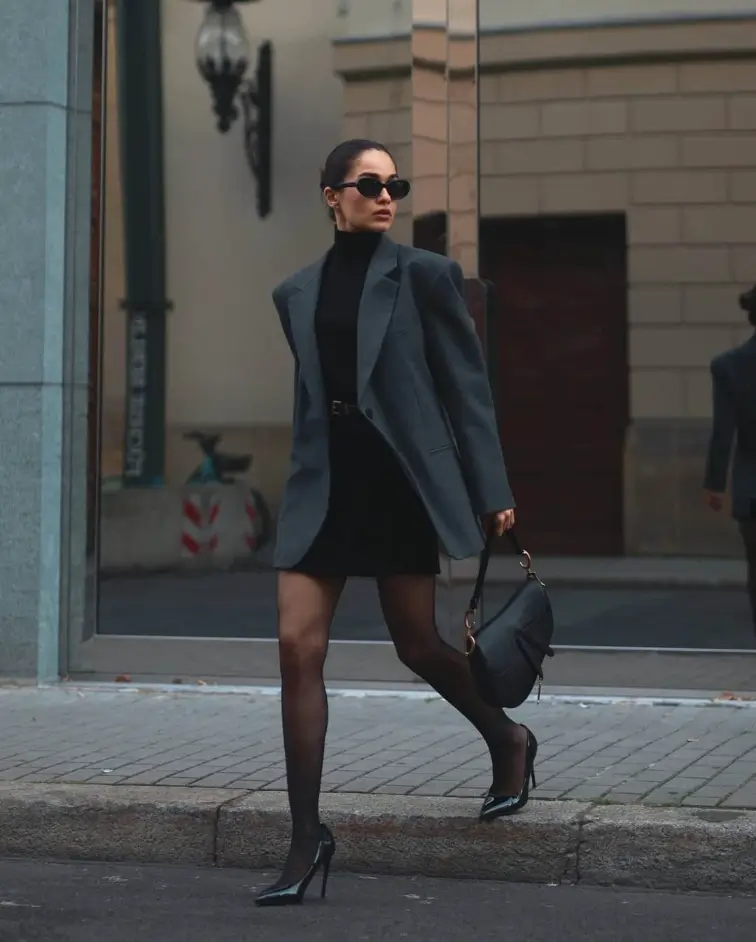 Start with a black knit and black trousers to create one long, clean line. Add a structured blazer in charcoal, navy, or a subtle check to shape the look. Finish with polished loafers or ankle boots and keep jewelry minimal. Let the tailoring do the talking, not the logos. This is the quiet, confident heart of Old Money Fall Style.