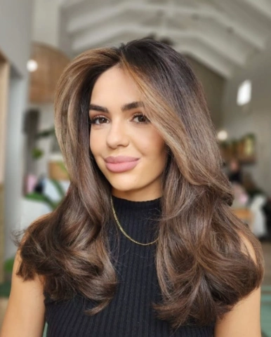 Long waves always bring that calm richness people notice but can’t explain. Ask your stylist for gentle layers and a few golden ribbons of color. Brush through once, not too much. Let it fall naturally. This Old Money Hair Style gives quiet power — the kind that turns heads without trying.