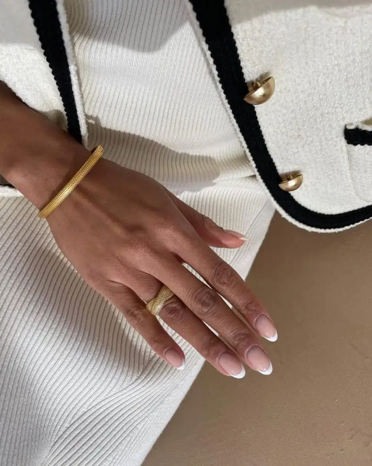 Modernize the French by slimming the tip and softening the smile line for a gentler, more expensive look. Swap stark white for creamy ivory and pair it with a milky nude or sheer pink base that looks breathable and natural. This reimagined French feels luxe, not loud, and suits interviews, bridal moments, and everyday wear. It is a confident, polished take on Old Money Nails that photographs beautifully under any light.