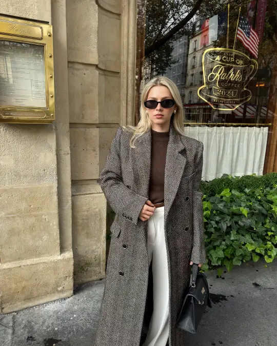 A herringbone coat is the quiet hero of cold weather. Choose wool or a wool cashmere blend that feels sturdy but soft. Camel, charcoal, or deep navy will match almost everything you own. Let the pattern do the talking. Wear it over a cream knit and straight trousers, then add leather shoes. The coat says Old Money Style because it looks inherited even when it is brand new.