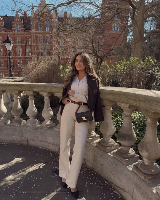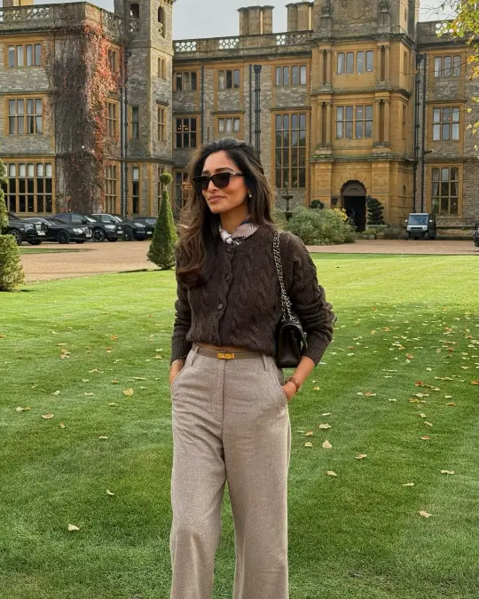 Accessories should whisper. Think a structured leather bag in tan or chocolate, a slender belt, pearl or gold studs, and a classic watch on a leather strap. Polished but not shiny. Quality over quantity. These details hold an outfit together and make it feel complete in that effortless Old Money Style way.