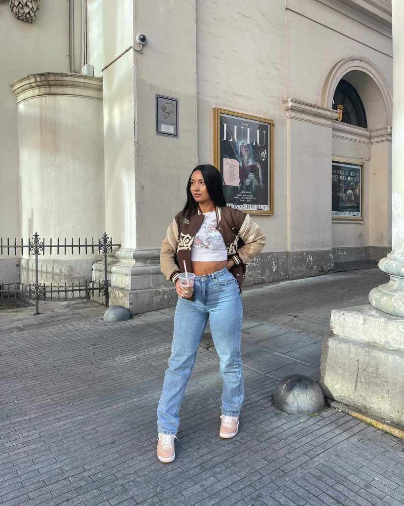 If you ever want a safe but stylish choice, denim plus sneakers never fails. I love throwing on straight leg jeans, a relaxed tee, and clean white sneakers. Add a varsity style jacket or sweatshirt, and boom, instant cool.