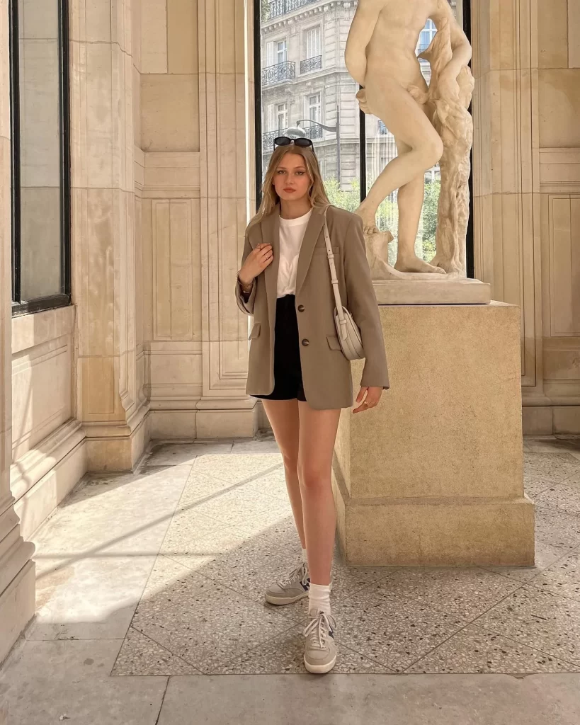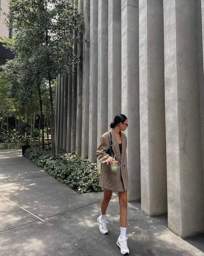 This look screams “I know fashion, but I also value comfort.” I pair an oversized blazer with jeans or tailored pants and finish it off with sneakers. The blazer sharpens things up while the sneakers keep it relaxed.