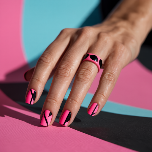 For a fashion-forward prom look, try a neon pink and black geometric design. The sharp lines and angular patterns create a bold, modern contrast that is perfect for someone looking to stand out. This edgy design is fun and vibrant, perfect for pairing with a daring prom dress that makes a statement.