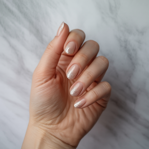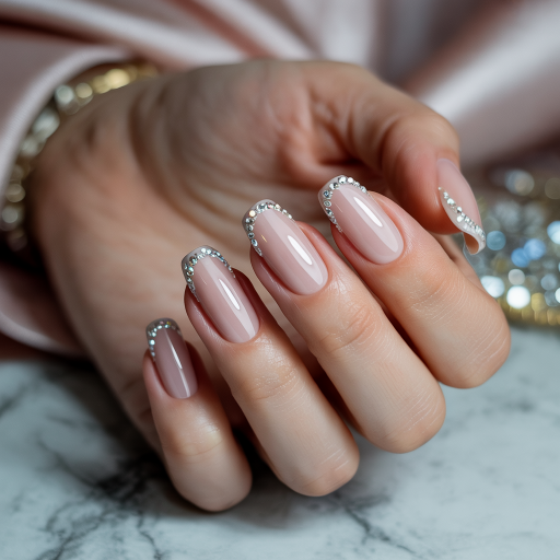 For those who want a subtle yet glamorous look, shimmering nude nails with ombre tips provide the perfect balance. The nude base with a soft ombre transition into a glittery tip creates a graceful and enchanting effect. This design is ideal for someone who wants to add a little sparkle without overwhelming their overall look, making it the perfect choice for a refined yet stylish prom look.