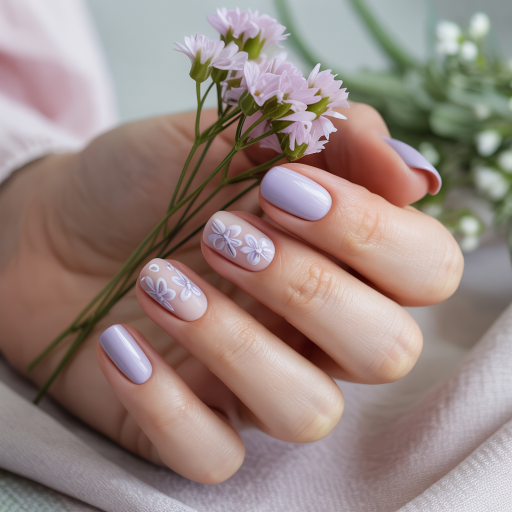 For a softer, more feminine touch, pastel-colored prom nails are a perfect choice. Think soft lavenders, mint greens, and baby blues. Add small floral details or delicate designs like lace patterns on some nails for a romantic and whimsical vibe. This nail idea pairs beautifully with any pastel-colored gown, giving you a dreamy and ethereal look.