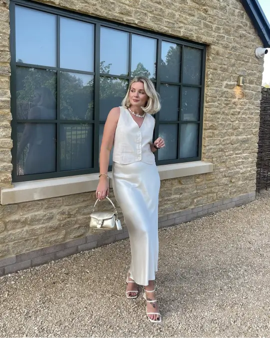 The way satin skims over the body is pure magic. It flatters curves, flows when you walk, and never feels stiff or clingy. Whether you go for a midi length, bias cut, or A-line, these satin skirt outfit ideas work for every body type and give you that confident, “I know I look good” feeling.