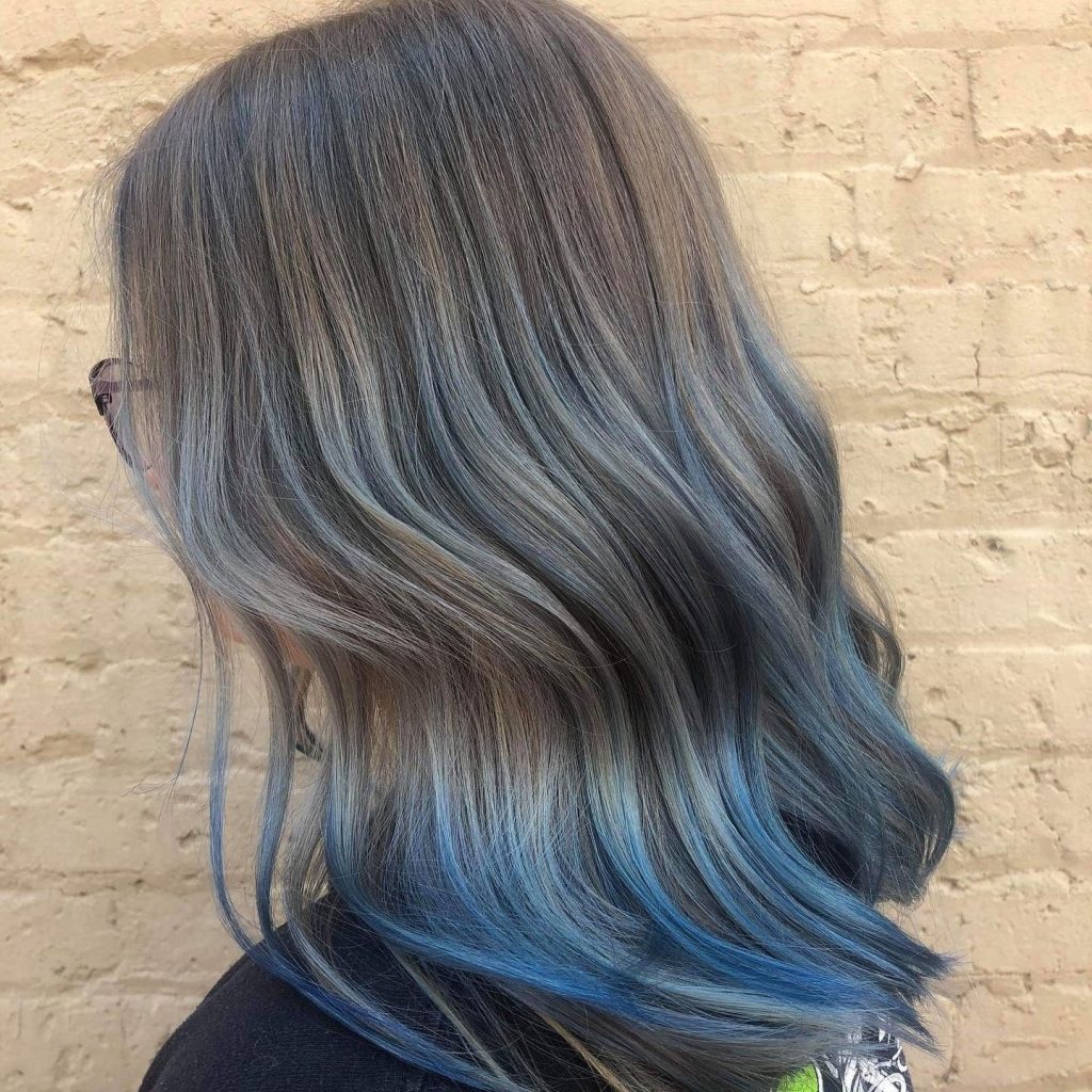 Graphite-Touched Blue Cut with Smoky Blue Hair Color
