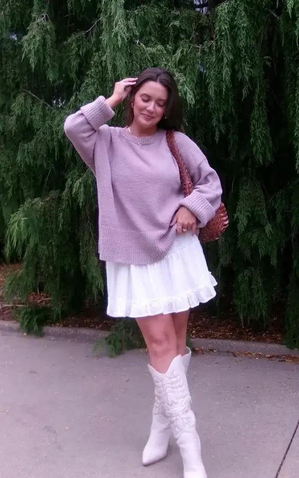 Chunky Sweater with White Skirt: Stay Warm and Stylish