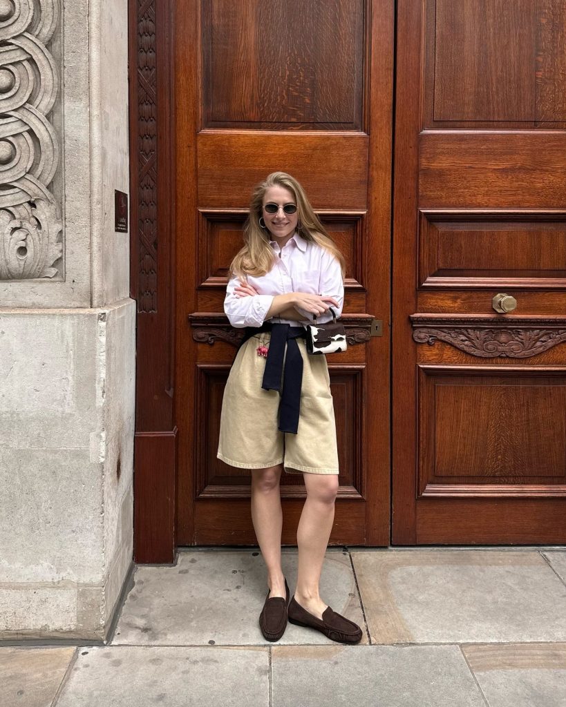 This combo screams “I have my life together,” even if you don’t. A crisp white button-down with neutral tailored shorts creates a look that feels clean without trying too hard.