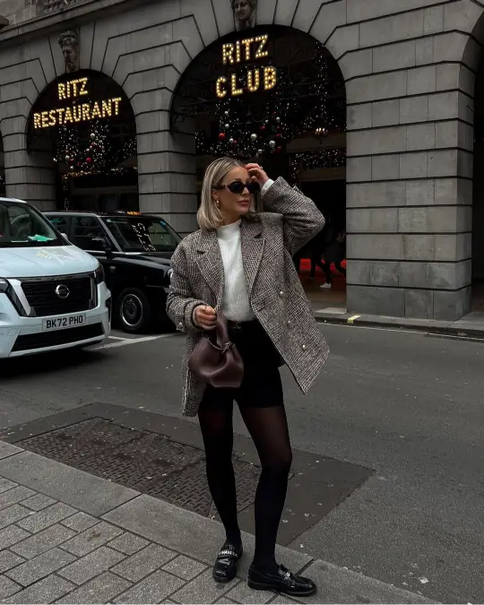 If you’re spending Thanksgiving in a colder place (or just love layering), a statement coat is your best friend. Throw it over a simple sweater, shorts with tights, and loafers — and suddenly, you’ve got a fashion-forward fit that looks straight out of a magazine. Don’t forget the sunnies for that extra touch of cool.