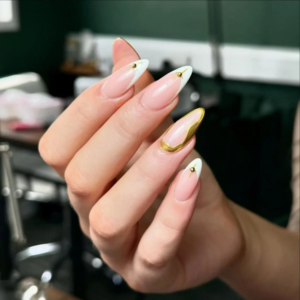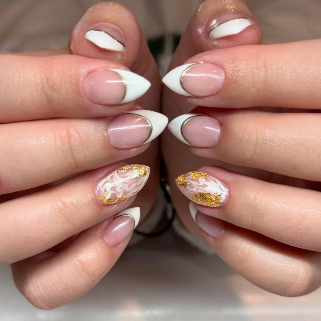 White and Gold Nail Almond Gold Tip Style