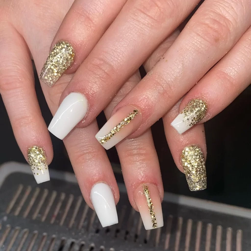 White and Gold Nail Glitter Glam Moment